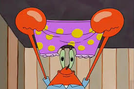 The first episode of Spongebob I ever saw was, of course, “Mid Life Crustacean”. For those who have not memorized the entirety of the 14 season discography, I will provide a brief but jarring summary. In this episode, Spongebob, a grown adult, along with his best friend (also a grown adult) encourage Spongebob’s boss (an even older, presumably more mature, grown adult) to embark on a harmless “panty raid” only to learn their lesson when they find that the panty drawer they have raided is that of Mr. Krabs’ elderly mother. This is a perfectly natural episode arc for a Y-7 animated children’s show. The only time I have ever encountered the phrase “panty raid” over the past 20 years has been in discourse over the collective childhood damage after this episode’s release.